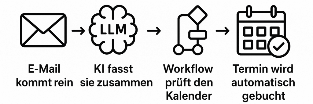 Ein LLM kann ohne zusätzliche Erweiterungen nicht selbst auf deinen Kalender zugreifen, keine E-Mails verschicken und auch keinen Browser öffnen. Es erzeugt nur Text.
