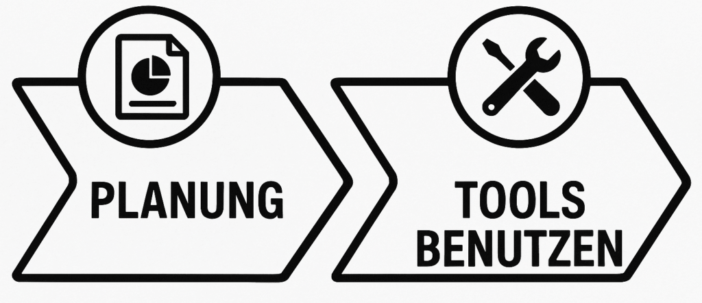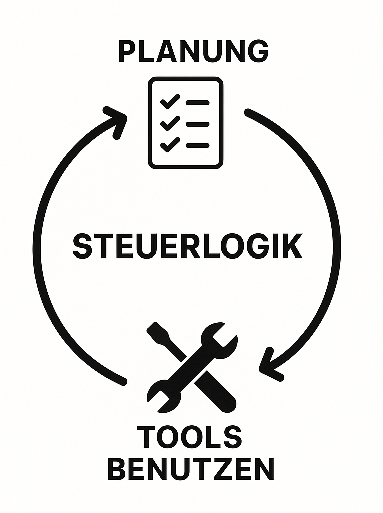Die Planung des Ablaufs und die Benutzung der Tools (Werkzeuge verbinden und konfigurieren) erfolgt durch den Menschen.